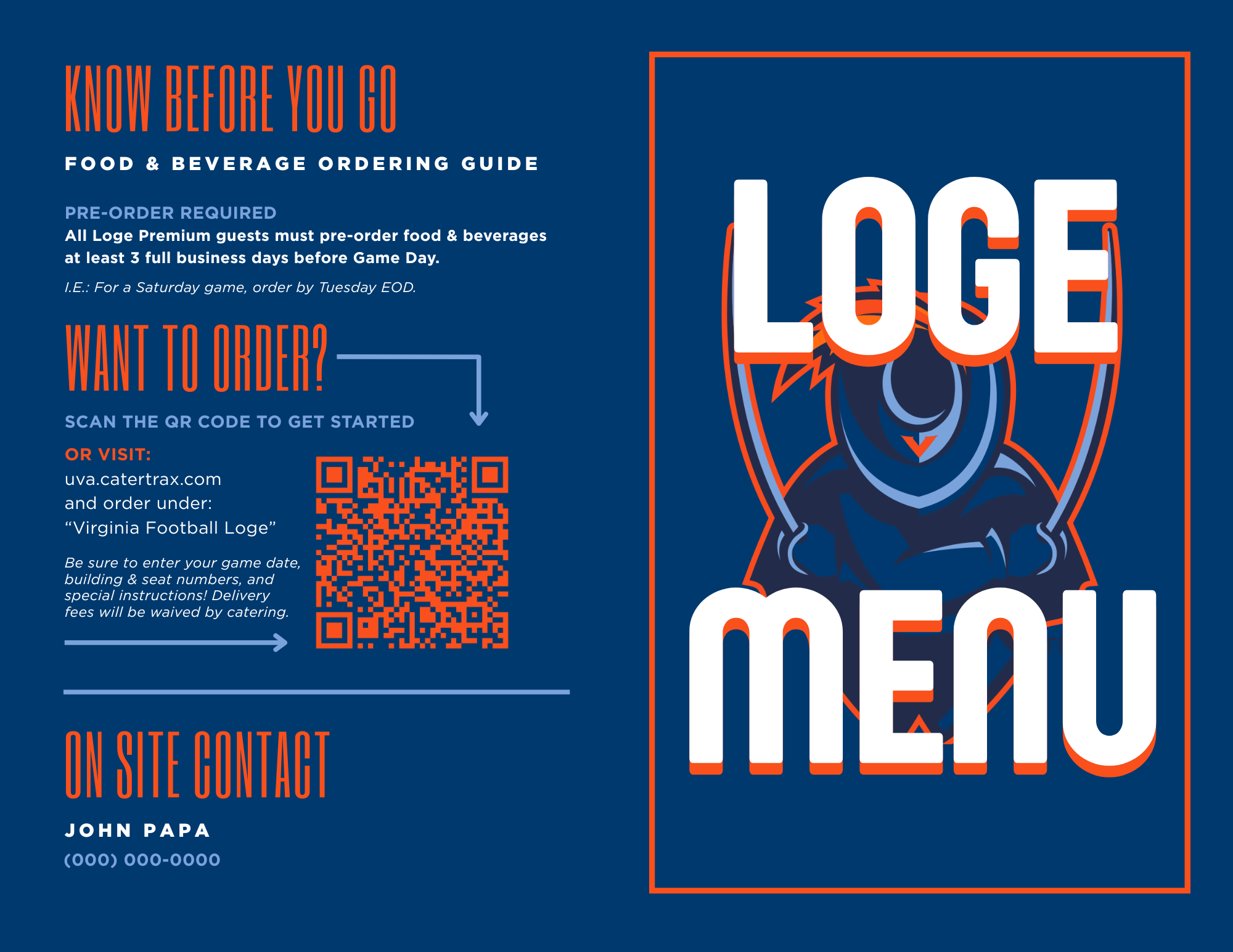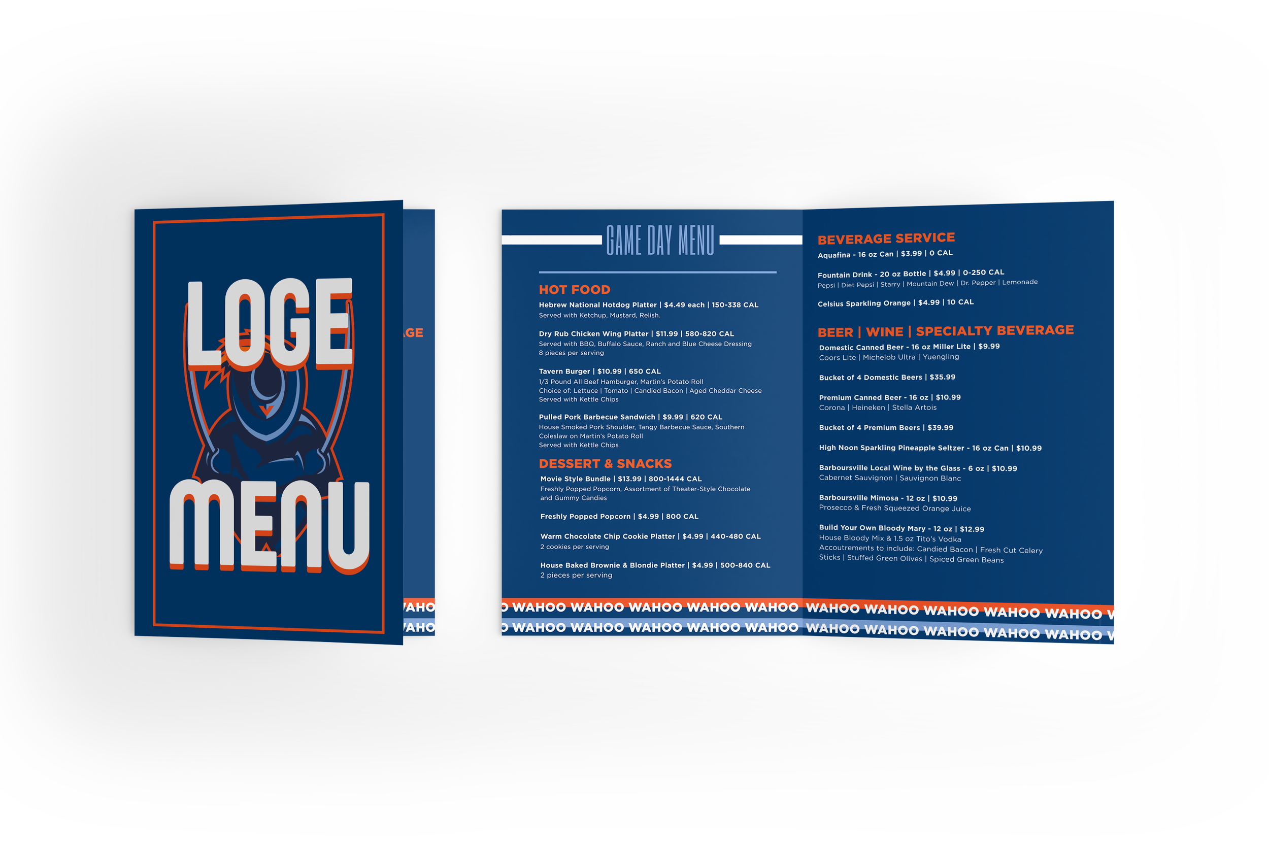 The Loge Menu was created for private suite ordering & catering during football games at John Paul Jones Arena. Front Cover of Menu Back Cover of Menu